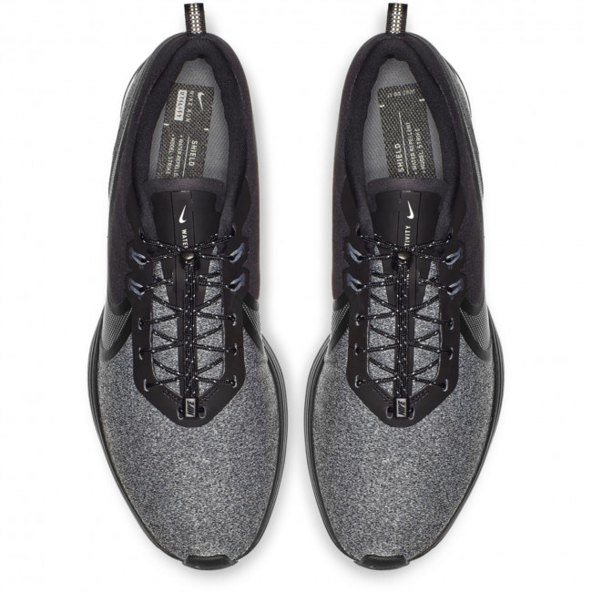 Мужские беговые кроссовки Nike Zoom Strike 2 Shield позволяют тренироваться в любую погоду. Водоотталкивающий верх и светоотражающие элементы помогают ориентироваться в темноте и во время дождя без утяжеления. Водоотталкивающий верх сохраняет ноги в сухости. Система шнуровки с фиксаторами для удобной посадки в холодную и дождливую погоду. Светоотражающие элементы светятся при слабом освещении. Легкий и прочный тканый материал. Внутренняя полиуретановая мембрана не пропускает влагу. Вставка Zoom Air в области пятки для мгновенной амортизации.
