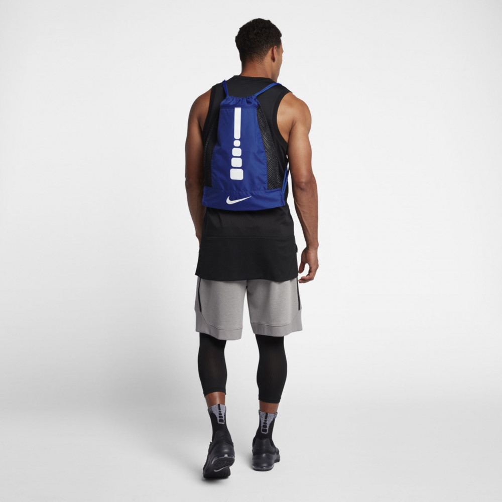 Сумки для обуви Nike Hoops Elite Basketball Gym Sack с легкостью вместит экипировку и все необходимые принадлежности. Закрывается при помощи затягивающихся шнурков-застежек, которые также используются в качестве лямок. Для хранения мелочей предусмотрен кармашек на молнии. Вставки из сетки обеспечивают должную вентиляцию.