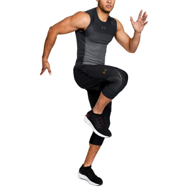 Ткань обладает эффектом второй кожи. Благодаря технологии UA Microthread, ткань высыхает быстрее, не цепляется за вас и не теряет форму. Вставки из сетки под мышками для дополнительной вентиляции. Материал тянется в 4-х направлениях, позволяя свободно двигаться. Материал отводит пот и быстро сохнет. Технология Anti-odor предотвращает появление неприятного запаха и рост бактерий.