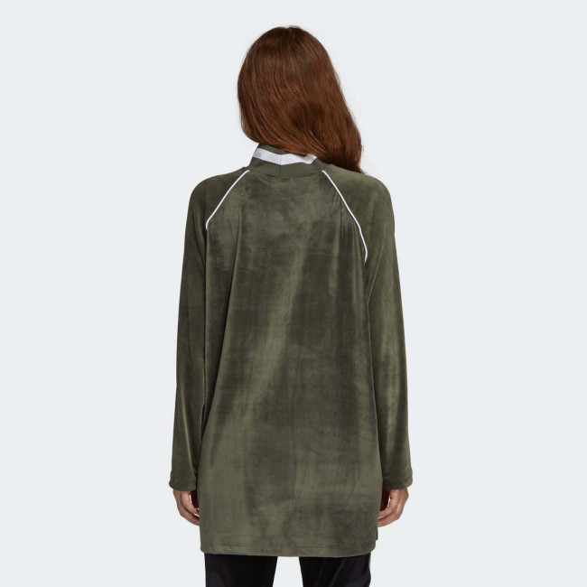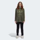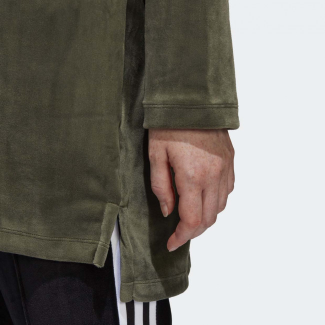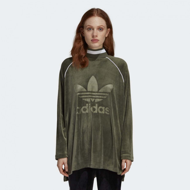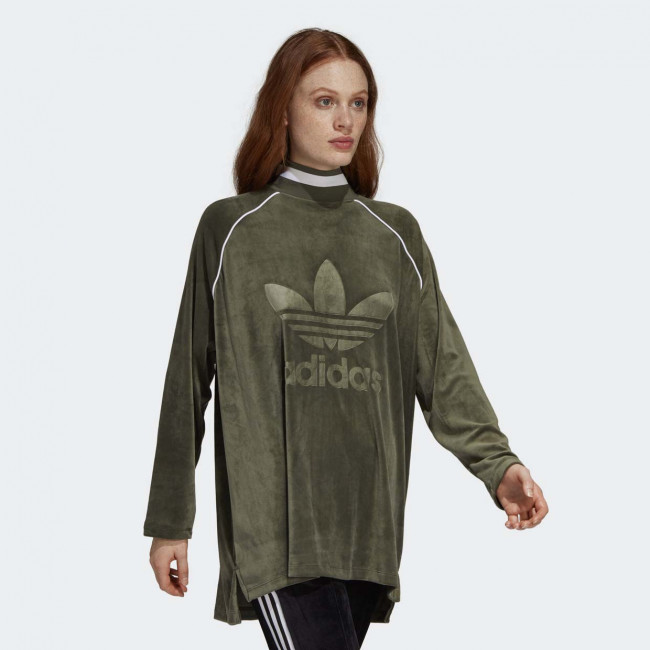 Женская толстовка в спортивном стиле от Adidas выполнена из легкого материала с влаговыводящими свойствами. Удлиненный фасон, рукава-реглан. Украшена тиснением логотипа бренда.