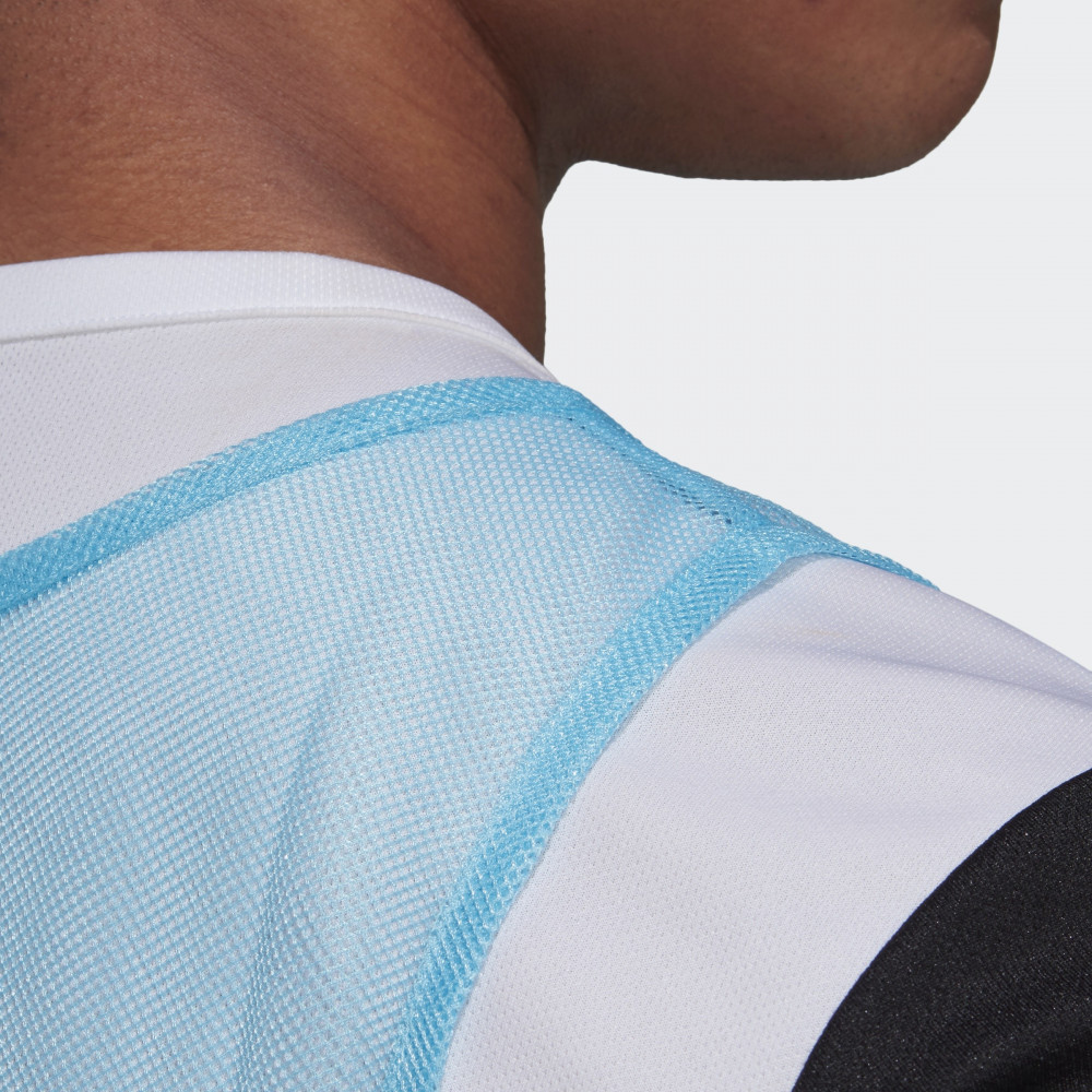 Майка для тренировок. Эта легкая майка отлично подойдет для футбольных тренировок и товарищеских матчей. Модель выполнена из сетчатого материала. Увеличенная горловина и проймы позволяют быстро менять ее между таймами.