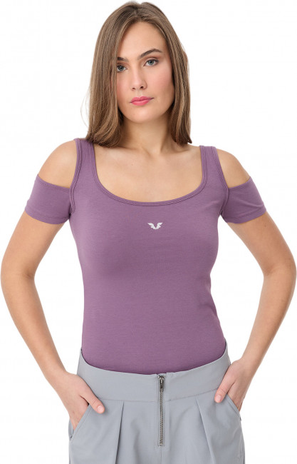 Футболка выполнена в современном и элегантном дизайне, сочетающем в себе женственность и нотки кокетства. Открытые плечи придают образу романтичность и утонченность, выделяя вас из толпы. Короткие рукава и свободный крой обеспечивают свободу движений и комфорт, делая футболку подходящей как для повседневной носки, так и для особых случаев. Стильные цветовые решения и аккуратный логотип Bilcee добавляют изделию индивидуальности и премиальности.