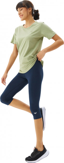 Укороченная длина леггинсов делает их отличным выбором для теплой погоды или занятий фитнесом и йогой. Эластичный пояс обеспечивает надежную фиксацию на талии, не создавая дискомфорта и не оставляя следов на коже.