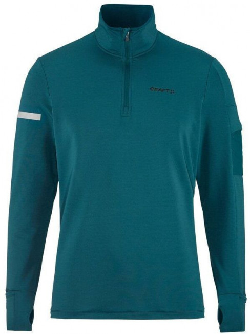Кофта изготовлена из переработанного полиэстера, утепленного флисовым слоем с внутренней стороны. Сетчатые вставки подмышками и в области шеи способствуют отводу излишней влаги и улучшенной вентиляции. Молния до середины груди с внутренней планкой защищает шею от натирания, а высокий воротник сохраняет дополнительное тепло. Манжеты с отверстиями для большого пальца защищают кисти от холода. На левом рукаве размещен карман для хранения ключей или карточек.