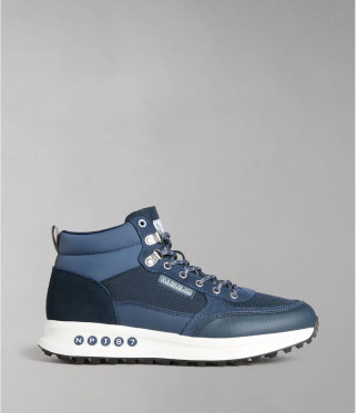 В дизайне ботинок сочетается силуэт чукка и стиль беговых кроссовок: лаконичный силуэт, воротник высотой до щиколотки, декоративная отделка задника.