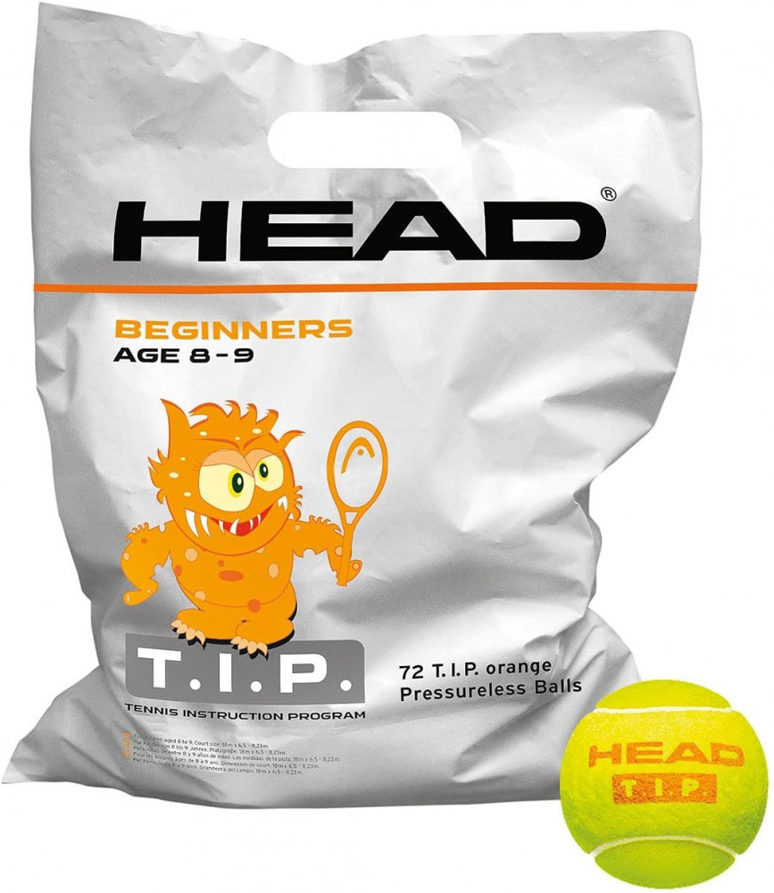 Мячи с пониженным давлением для детей в возрасте 8–9 лет. Мячи T.I.P. ORANGE имеют на 50% меньшую скорость отскока по сравнению со стандартными мячами. 72 мяча в упаковке.