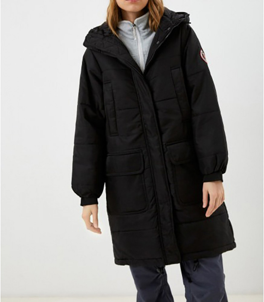 Женская стеганная утепленная куртка Lee Cooper прямого кроя. Неотстегивающийся капюшон на кулиске, воротник стойка, 2 нагрудных кармана и 2 боковых, застежка на молнию и кнопках.