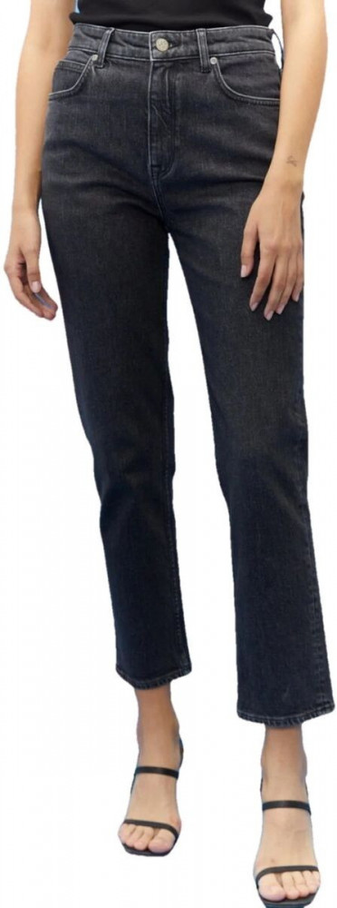 Высокий пояс - Прямые штанины от бедра до щиколотки - Укороченная длина.