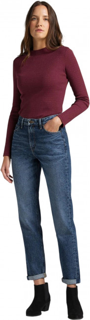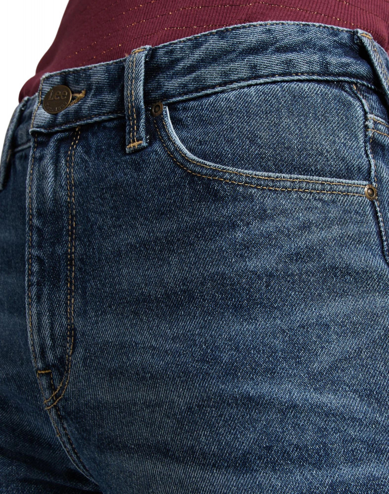 ПодробнееЖенские джинсы Lee Mom Straight из 100% хлопка. Прямой крой, сужающиеся книзу брючины. Высокая посадка на талии. Легендарная кожаная нашивка на задней стороне пояса. Застежка на молнии. Карманы спереди, два кармана с фирменной строчкой сзади.