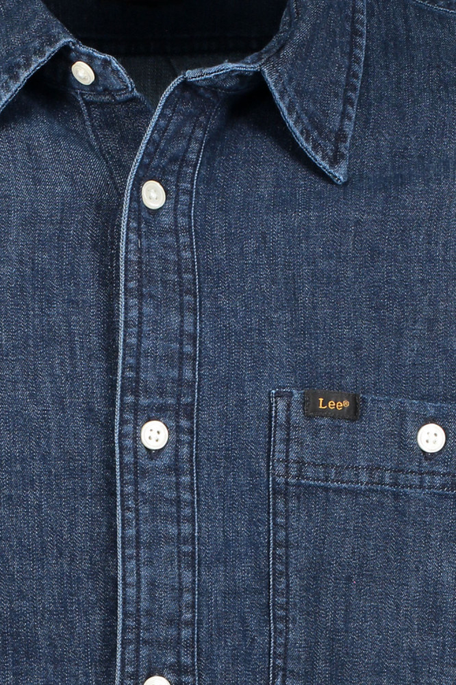 Детали включают нагрудный карман с логотипом Lee на тканой этикетке и пуговицы в черепаховом стиле.