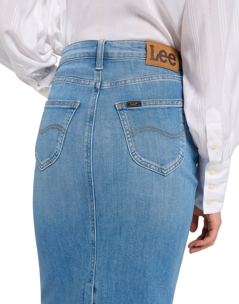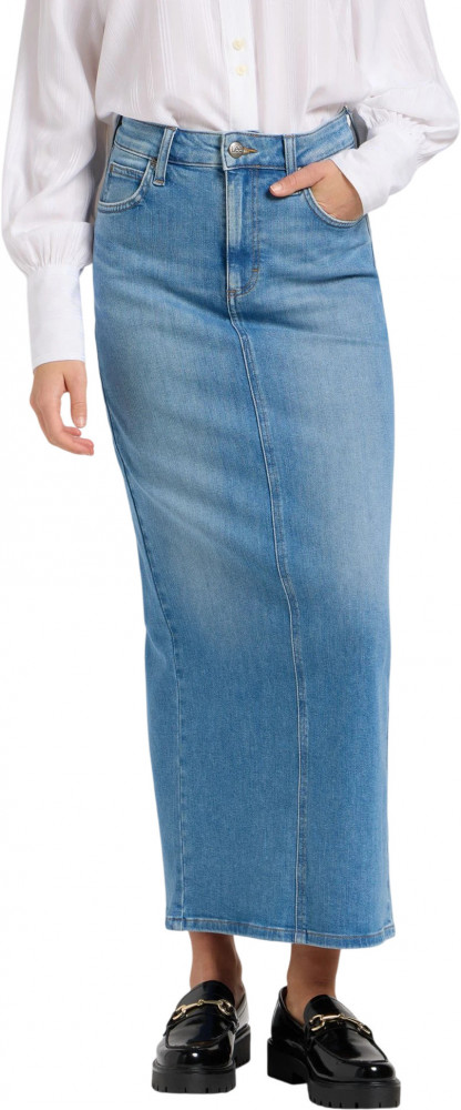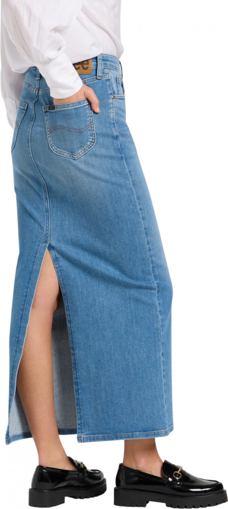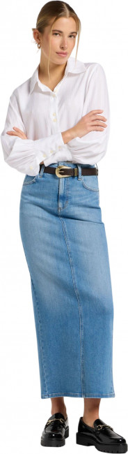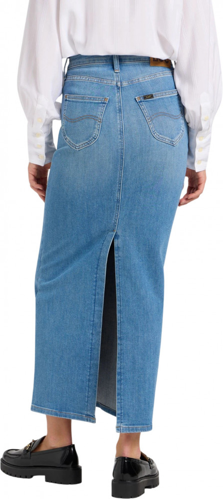 Материал юбки — легкий деним с небольшим добавлением эластичности, что обеспечивает удобную посадку и мягкость в носке. Классический фасон с пятью карманами подчёркивает традиционный стиль, в то время как задние карманы украшены S-образными швами. Завершают образ фирменная нашивка Lee и пуговицы с логотипом, которые подчеркивают качество исполнения. Эта юбка макси станет незаменимым элементом вашего гардероба, предоставляя возможность экспериментировать с образами и оставаться в тренде.