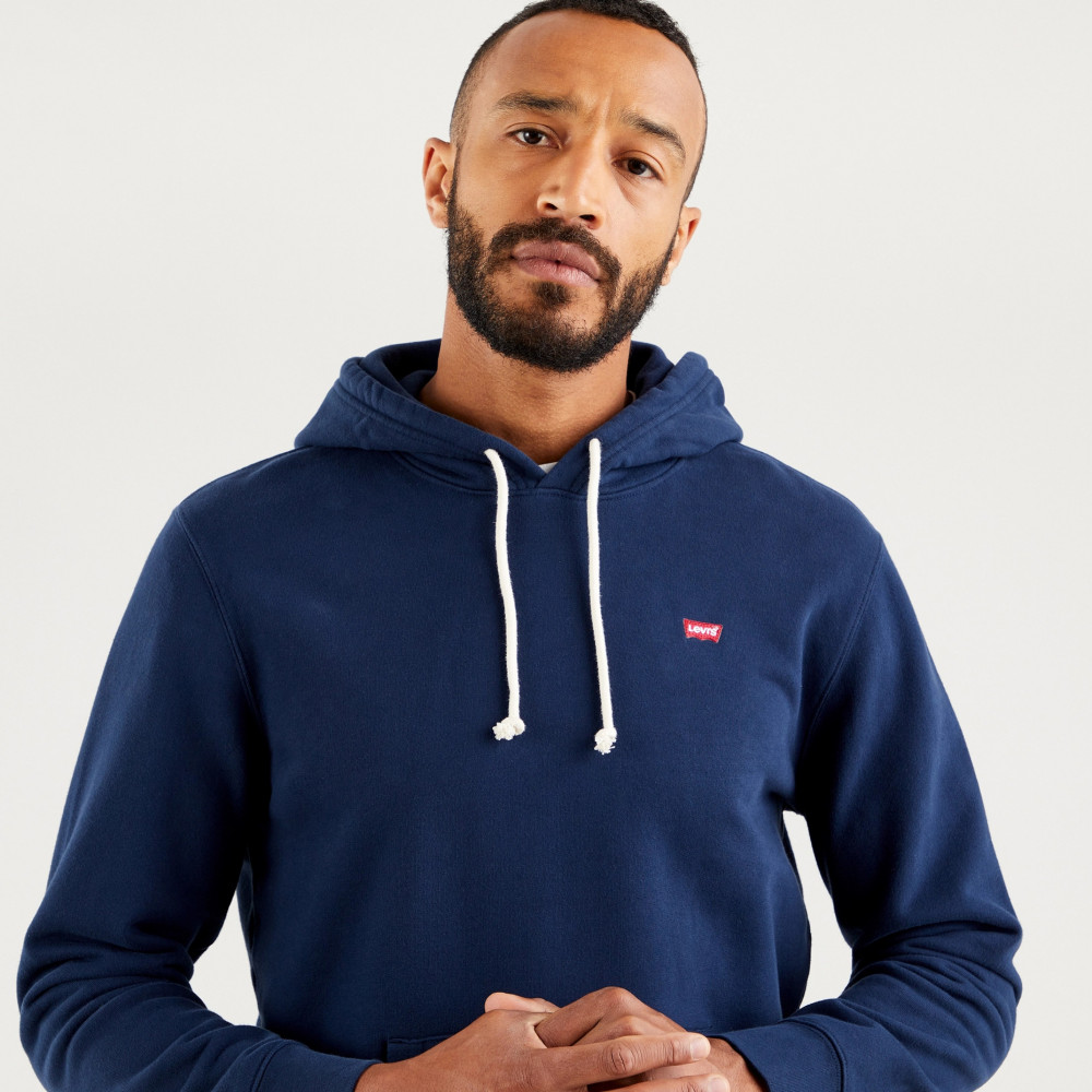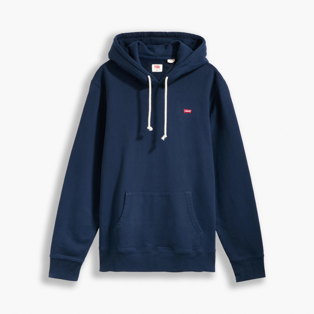 Худи Levis New Original Hoodie синего цвета. Изготовлено из мягкого хлопка. Небольшая фирменная нашивка Levis Batwings на груди слева.