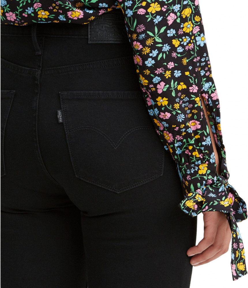 Женские облегающие джинсы Levis черного цвета. Выполнены из эластичного денима для комфорта движения. Высокая посадка на талии. Легендарная кожаная нашивка на задней стороне пояса. Застежка на молнии. Карманы спереди и два кармана с фирменными дугообразными строчками Levis сзади.