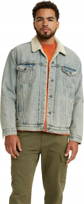 Мужская джинсовая куртка Levis SHERPA TRUCKER c утеплителем из шерпы. Заостренный воротник с белой оторочкой из шерпы. Прямая кокетка. Планка на кнопках спереди. Имеет внутренние карманы для нужных мелочей. Боковые карманы для рук. Нагрудные карманы с клапанами на кнопках. Регулируемый подол. Джинсовка Levis выполнена из 100% хлопка и подходит для ношения каждый день.