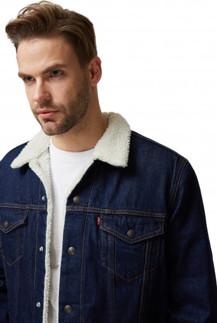 Мужская джинсовая куртка Levis SHERPA TRUCKER c утеплителем из шерпы. Заостренный воротник с белой оторочкой из шерпы. Прямая кокетка. Планка на кнопках спереди. Имеет внутренние карманы для нужных мелочей. Боковые карманы для рук. Нагрудные карманы с клапанами на кнопках. Регулируемый подол. Джинсовка Levis выполнена из 100% хлопка и подходит для ношения каждый день.