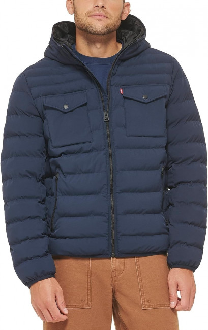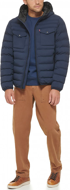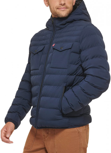 ПодробнееМужская куртка Levis Stretch Hooded Puffer Jacket - это cтеганая куртка с капюшоном, на подкладке с синтетическим наполнителем. Плюшевый наполнитель обеспечивают стильный внешний вид. Несколько карманов для удобства: два нижних кармана на молнии, два нагрудных карманах с клапанами на кнопках и один внутренний карман. Застежка-молния. Фиксированный капюшон. Эластичные манжеты и подол.