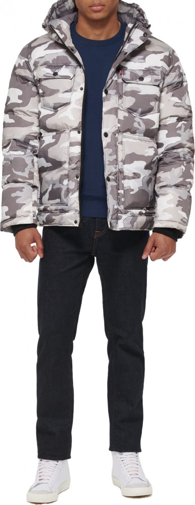 ПодробнееМужская куртка Levis Heavyweight Mid-Length Hooded Military Puffer Jacket - это плотная куртка средней длины с капюшоном в стиле милитари. Водонепроницаемая куртка-пуховик с капюшоном и встроенными трикотажными манжетами в рубчик. Два нагрудных кармана с клапанами на кнопках, два нижних прорезных кармана на молнии и один внутренний карман. Регулируемый шнурок на капюшоне. Застежка-молния спереди с планкой на кнопках.