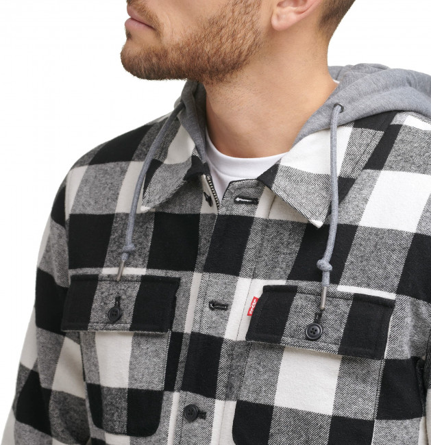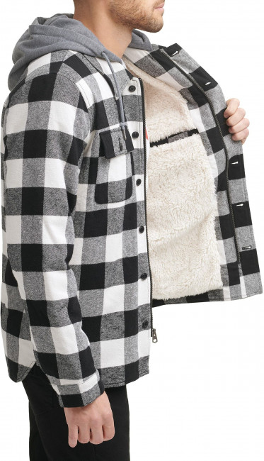ПодробнееМужская куртка Levis Cotton Shirt Jacket with Soft Faux Fur Lining and Jersey Hood - это хлопковая куртка Levi's с подкладкой из мягкого искусственного меха и трикотажным капюшоном. Имеет крой рубашки. Куртка-рубашка в клетку с отложным воротником и трикотажным капюшоном на шнурке для регулировки посадки.