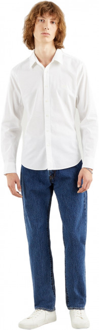 Классическая рубашка Levis белого цвета. Выполнена из 100% хлопка. Застегивается на пуговицы. Прямой крой, закругленный подол, длинные рукава с манжетами на пуговицах. Вышивка логотипа Levis Batwings на груди слева. Заправьте ее в любимые джинсы или носите навыпуск - останетесь модным в любом случае.