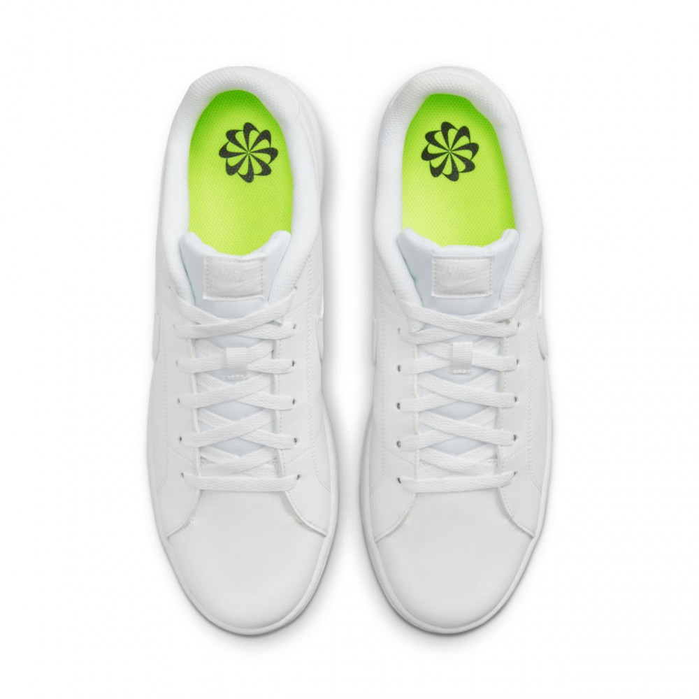 ПодробнееТЕННИСНЫЙ ОБРАЗ В РЕТРОСТИЛЕ. Встречай популярную модель прошлых лет в современном исполнении. Модель Nike Court Royale 2 Next Nature содержит не менее 20% переработанных материалов. Удобный верх из гладкого синтетического материала. Крупный логотип Swoosh создает образ в ретростиле. Стильный и прочный верх из синтетической кожи отлично впишется в разные образы. Прочная подошва с зигзагообразным рисунком добавляет стильный акцент в легендарный образ и обеспечивает сцепление. Мягкий низкопрофильный бортик выглядит элегантно и обеспечивает комфорт. Мягкий низкопрофильный бортик для комфорта и изящного образа. Цельная вулканическая подошва, созданная методом термической обработки, для минималистичного вида. Модель не менее чем на 10% выполнена из переработанных материалов, включая шнурки, резину Grind на подметке и верх, на 50% состоящий из переработанного полиэстера.