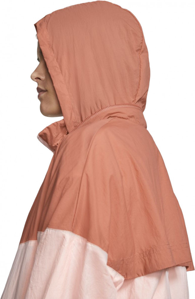 Женская ветровка Nike. Высокий воротник, капюшон, эластичные манжеты и кулиска на поясе обеспечивают надежную защиту от дождя и ветра в ненастную погоду.