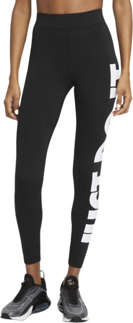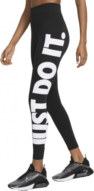 Nike Sportswear Essential Women's High-Rise Leggings. МАКСИМАЛЬНЫЙ КОМФОРТ. Леггинсы Nike Sportswear украшены большим принтом Just Do It на левой штанине. Мягкая эластичная ткань с технологией влагоотведения обеспечивает плотную посадку и свободу движений. Отведение влаги и комфорт. Мягкая эластичная ткань отводит влагу, обеспечивая охлаждение и комфорт на протяжении всего дня. Высокая посадка. Облегающая модель с высокой посадкой на бедрах дает ощущение дополнительной поддержки и комфорта. Эластичный пояс. Эластичный пояс обеспечивает плотную и удобную посадку.