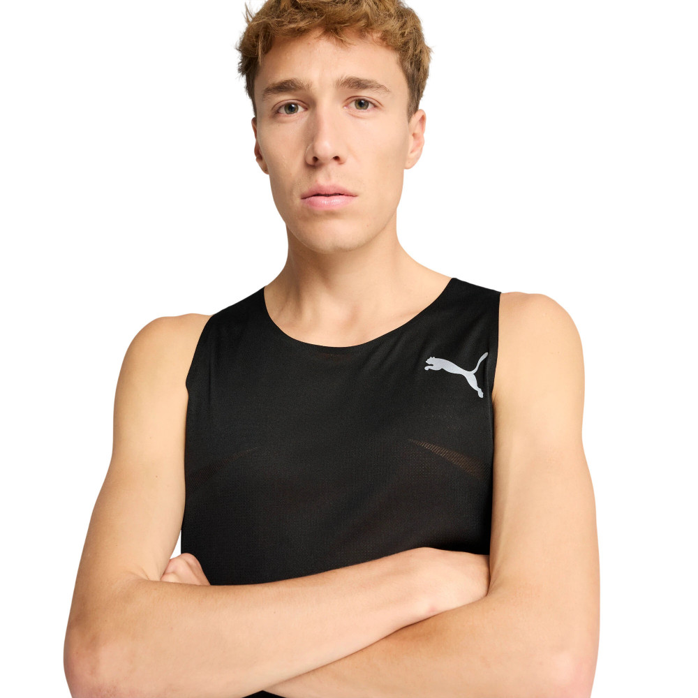 ПодробнееС уверенностью достигай персональных рекордов в этой элитной беговой майке. С технологией ULTRASPUN для максимальной воздухопроницаемости и отвода влаги, проклеенными вырезами для рук для уменьшения трения и перфорированными деталями из жаккардовой ткани. Сохраняй прохладу и оставайся сосредоточенным благодаря технологии терморегуляции PUMA pinnacle.