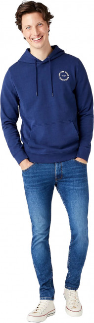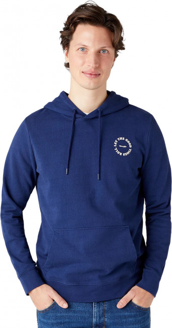 ПодробнееХуди Wrangler синего цвета. Выполнено из мягкого хлопка. Свободный крой, карман кенгуру, капюшон с регулировкой шнурком. Брендинг на груди слева.
