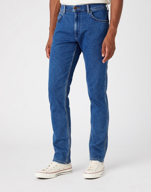ПодробнееМужские джинсы Wrangler Greensboro прямого кроя. Выполнены из стрейчевого денима для комфорта движения. Средняя посадка. Застежка на молнию. Универсальные джинсы, слегка зауженные к щиколоткам брючины. Карманы спереди, два кармана с фирменной строчкой W сзади и легендарной кожаной нашивкой бренда.