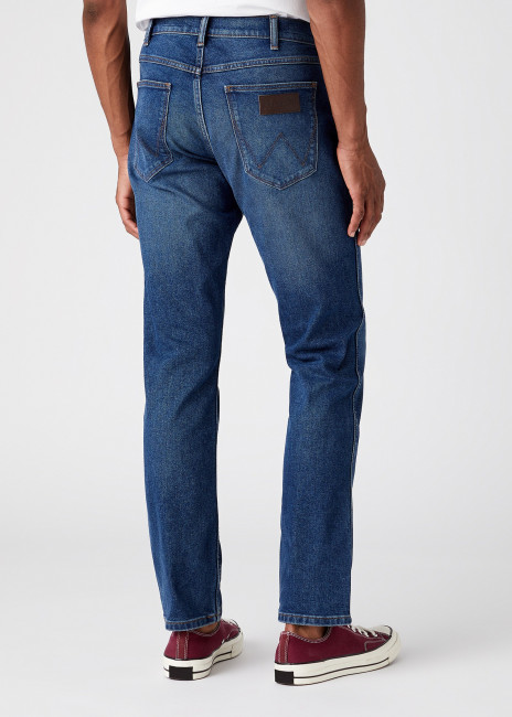 ПодробнееМужские джинсы Wrangler Greensboro прямого кроя. Выполнены из стрейчевого денима для комфорта движения. Средняя посадка. Застежка на молнию. Универсальные джинсы, слегка зауженные к щиколоткам брючины. Карманы спереди, два кармана с фирменной строчкой W сзади и легендарной кожаной нашивкой бренда.