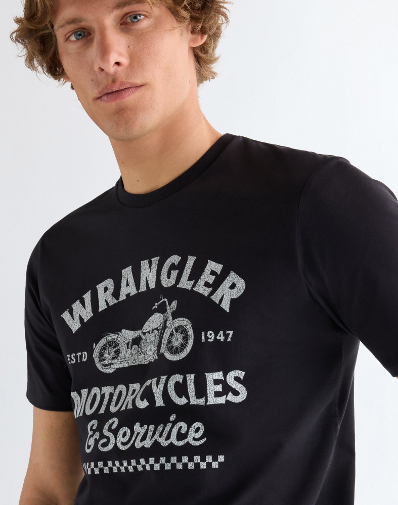 ПодробнееФутболка Americana классического кроя — незаменимый элемент гардероба. Эта винтажная футболка Americana черного цвета — дань уважения наследию Wrangler. Она украшена оригинальным графическим рисунком на груди. Футболка имеет удобный классический крой и круглый вырез. 100% хлопок.