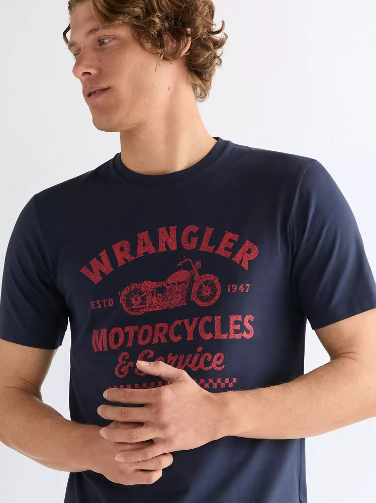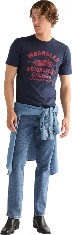 ПодробнееФутболка Americana Tee стандартного кроя станет уникальным дополнением вашего гардероба. Эта винтажная футболка Americana Tee темно-синего цвета – дань уважения наследию Wrangler. Она украшена оригинальным графическим рисунком на груди. Футболка имеет удобный стандартный крой и классический круглый вырез. 100% хлопок.